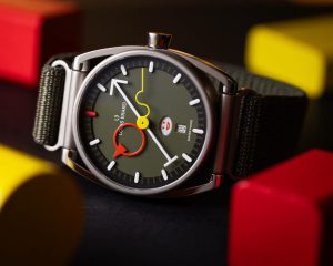 Beim zweiten Stück enthüllt Le Régulateur Louis Erard x Alain Silberstein Khaki die charakteristischen Elemente von Silberstein: einen großen weißen Pfeilzeiger für die zentralen Minuten, ein rotes Dreieck für die Stunden bei 12 Uhr und eine kleine gelbe Serpentinenanzeige für die Sekunden bei 6 Uhr ‘Uhr. Das Automatikkaliber Sellita SW266-1 mit Regulator ist außerdem mit einer durchbrochenen Schwungmasse mit dem schwarz lackierten Louis-Erard-Symbol personalisiert. Es läuft mit einer Frequenz von 28.800 Vph und hat eine Autonomie von 38 Stunden. Dieses Exemplar wird ebenfalls in einer Auflage von 178 Stück präsentiert, von denen 100 einzeln verkauft werden und 78 als Teil der Dreierbox. Der Preis für den Le Régulateur allein beträgt CHF 4.000, ebenfalls vor Steuern.