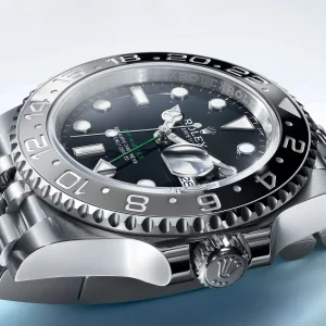 Die GMT-Master II kombiniert diese kosmische Besonderheit mit der legendären „Pepsi“-Lünette aus Cerachrom, in kräftigem Blau und Rot. Diese Replica Rolex Uhr spricht Sammler an, die kosmische Geschichten ebenso wie technische Exzellenz schätzen.