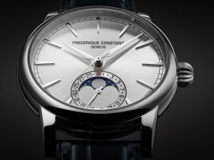 Die Classic Moonphase Date Manufacture, das Flaggschiffmodell von Frederique Constant, verfügt über ein neues Design und Uhrwerk. Diese Uhr ist in drei neuen 40-mm-Varianten erhältlich und verfügt über ein neues, raffiniertes Zifferblatt mit Sonnenschliff, feine Zeiger und ein neues FC-716-Uhrwerk.