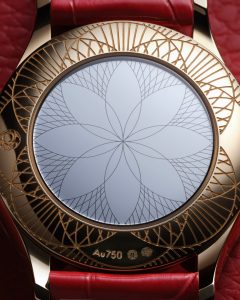 Bei den Moonshine Gold-Modellen hat die Marke den verspielteren Weg eingeschlagen. Vor dem Hintergrund eines cremefarbenen Grand-Feu-Zifferblatts hat sich ein Modell für Mut mit leuchtend roten römischen Ziffern entschieden, die mit einem passenden, doppelt umwickelten roten Lederarmband gepaart sind. Das andere Modell verfügt über ein champagnerfarbenes Goldzifferblatt, dessen strukturierte Oberfläche Seide imitieren soll, zusammen mit goldfarbenen Ziffern, wodurch eine Farbpalette entsteht, die monochromatisch, aber dennoch luxuriös ist.